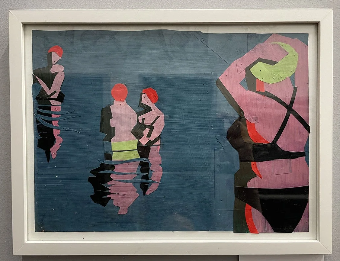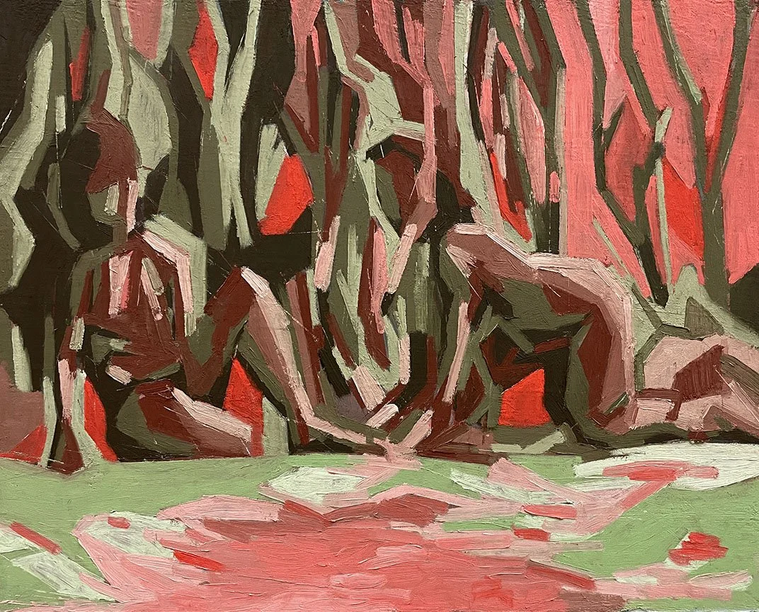 The “Bathers” is a popular historic and contemporary theme in painting; it is an excuse to place the human form within a natural context. Figures in a Landscape. These images can range from realist depictions of figures swimming and lounging to more abstracted forms and inquiry. Often, Bathers paintings have an allegorical element that reveals a poetic connection between the human realm and our environment.