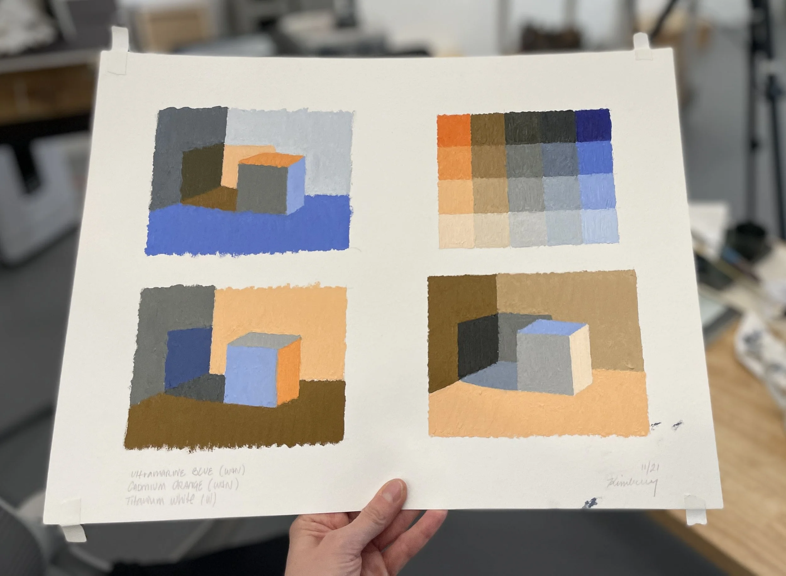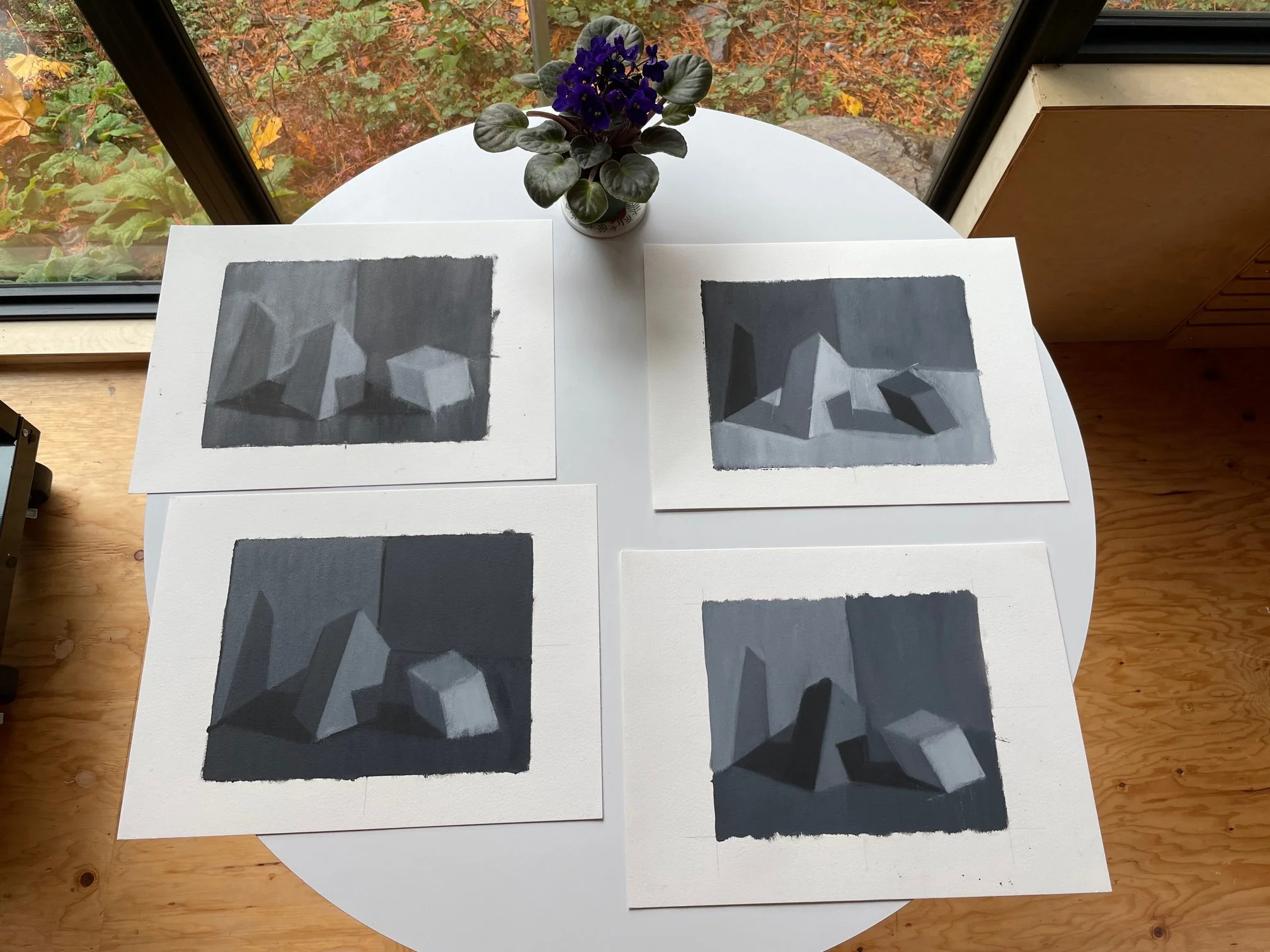 A crucial part of our color unit is learning to apply the mixtures we create from our color charts. This BOX diagram is a simple scenario we can use to begin understanding and experimenting with value and temperature relationships.
