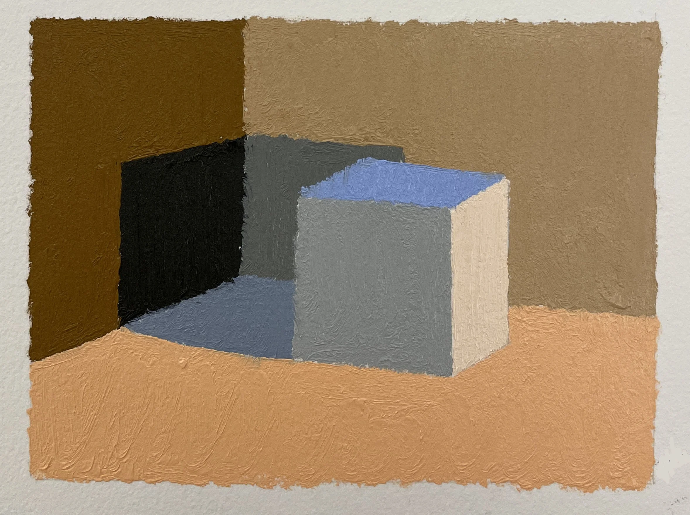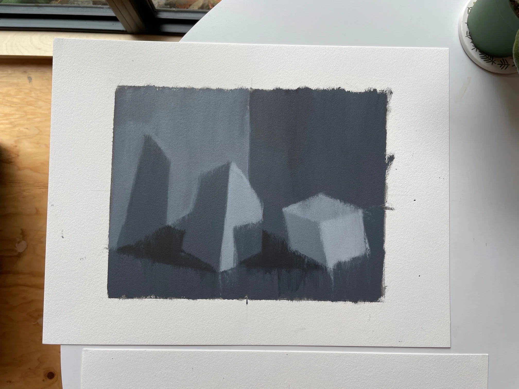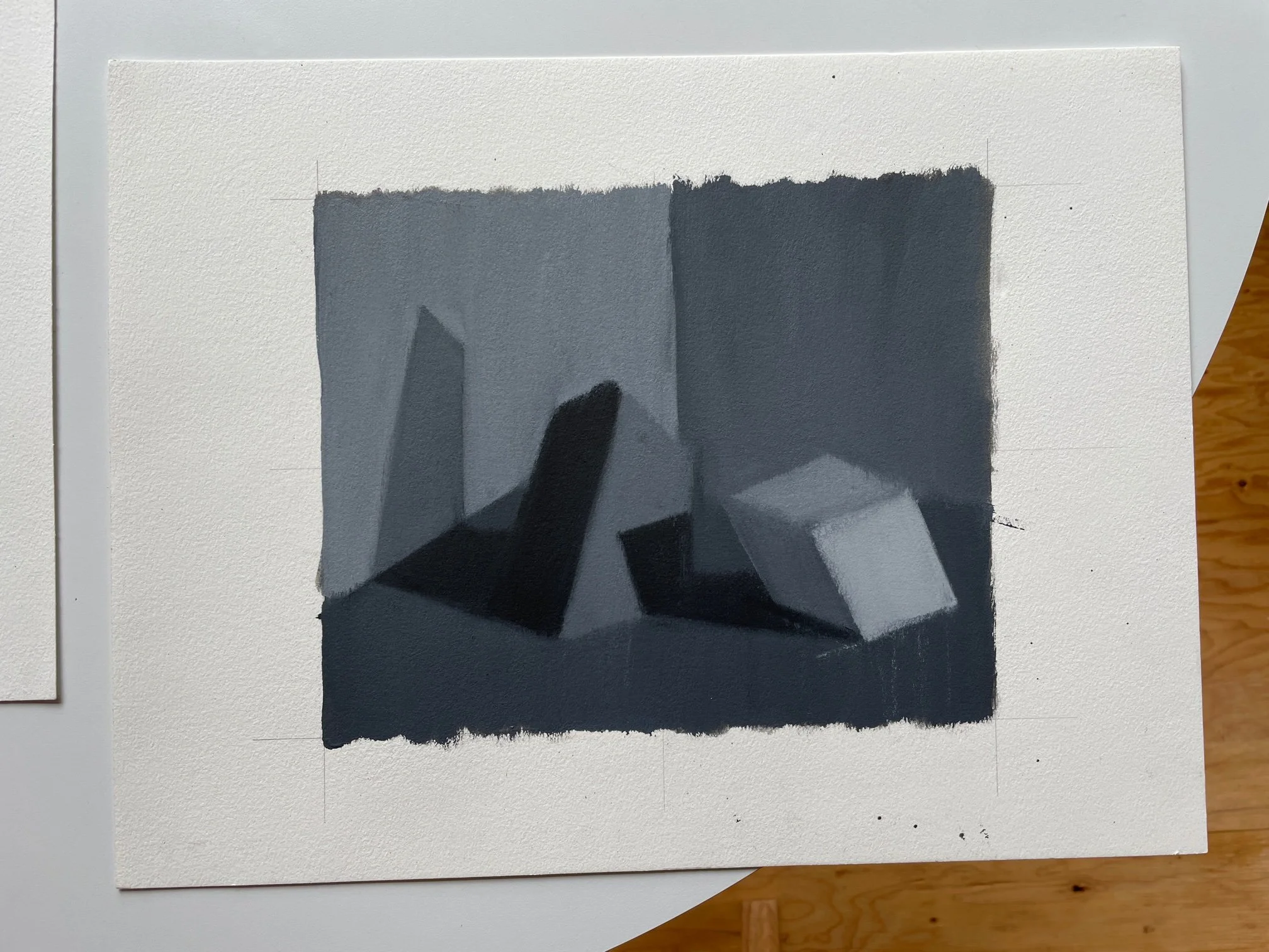 Video Demonstration of painting the Warmer Values on the planes that are "touched" by/ facing the light in my painted study. By doing so, we express a quality of light (temperature), in additional to the quantity (value).