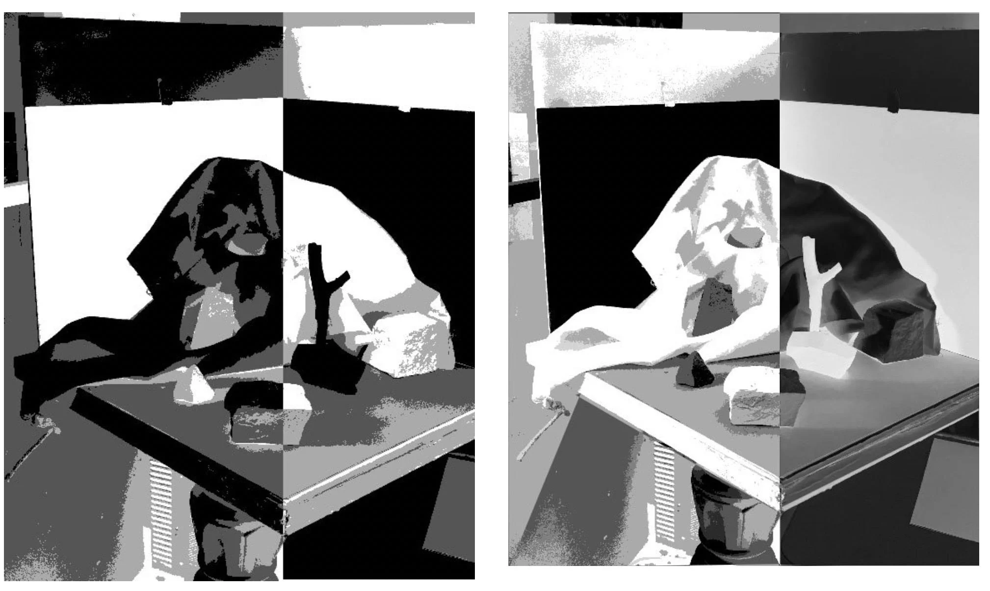While using this technology is a quick, useful tool, it is not necessary. You can train your eye to cluster and navigate the the shapes of light and dark through focused looking, drawing and experimenting.