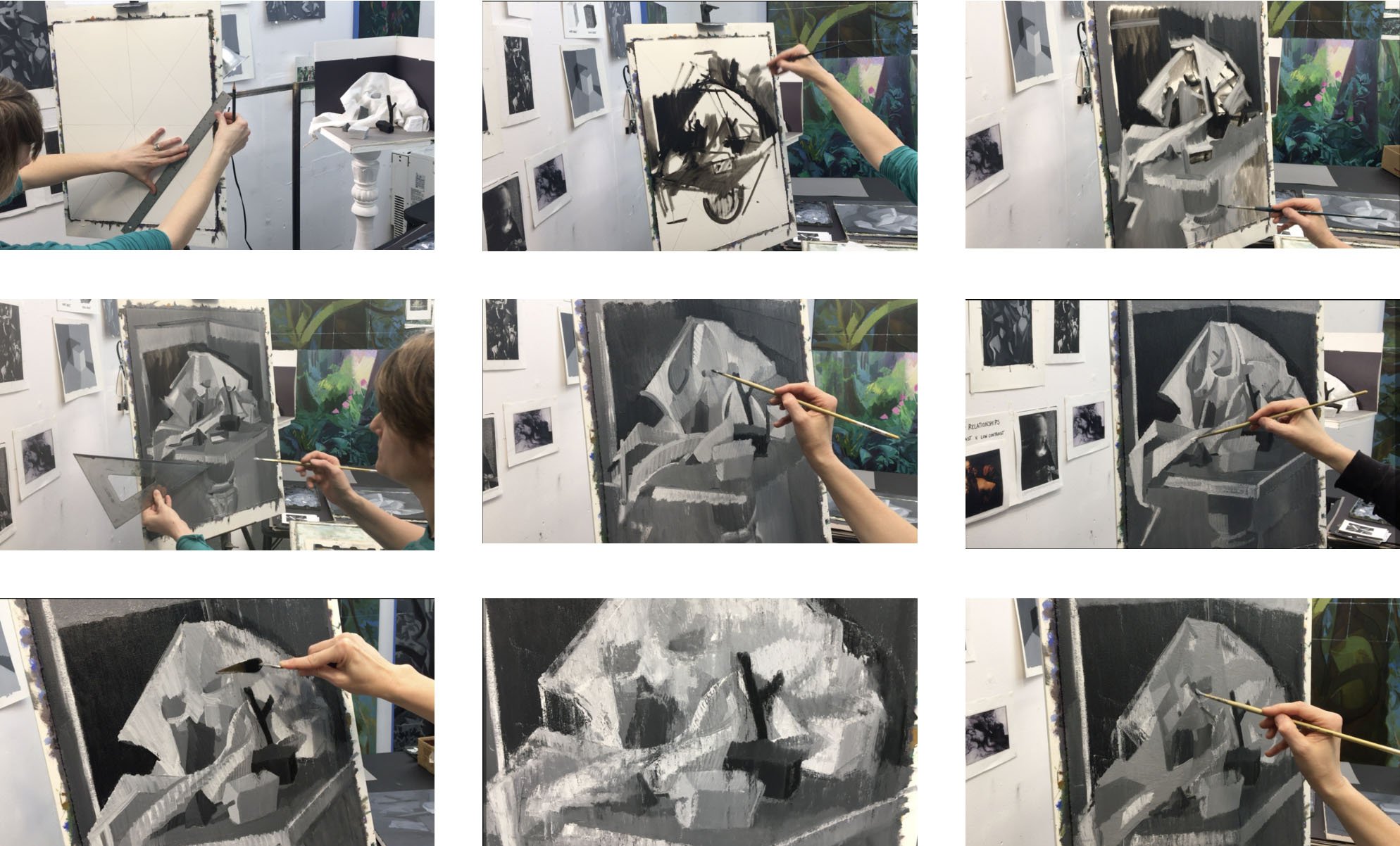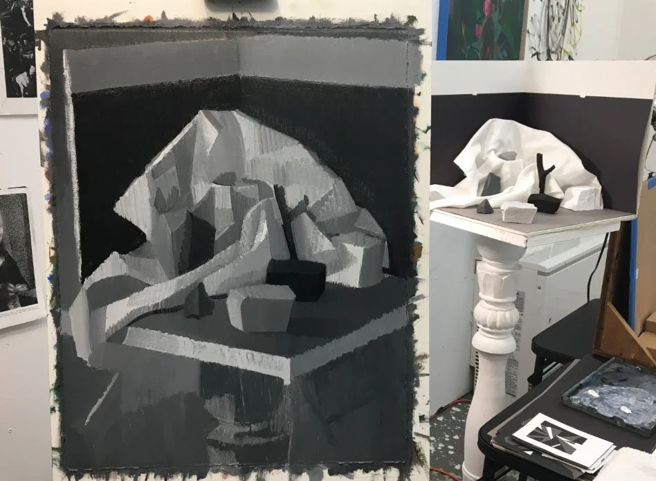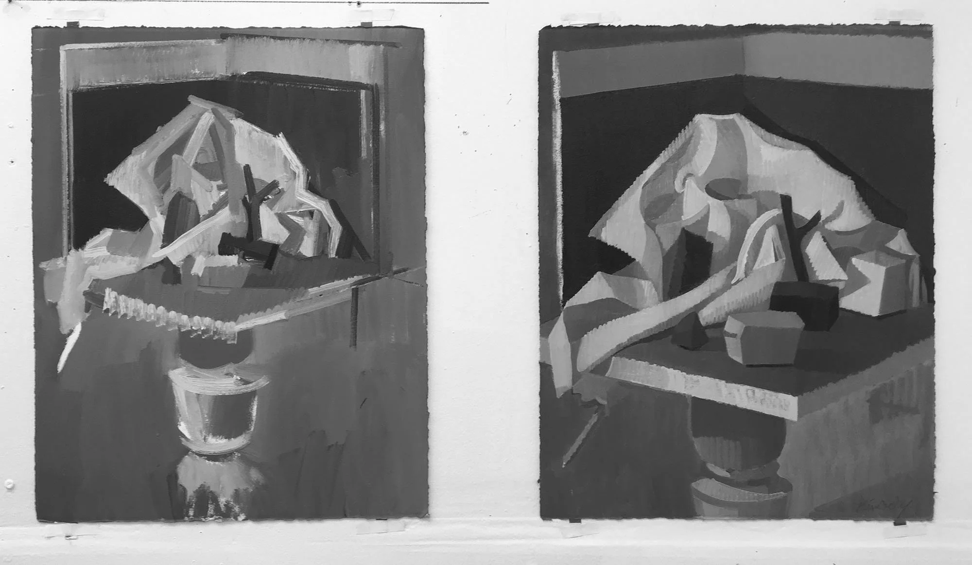 Analyze the Composition with a Limited Value Scale in Pencil, Gouache, or Oils.